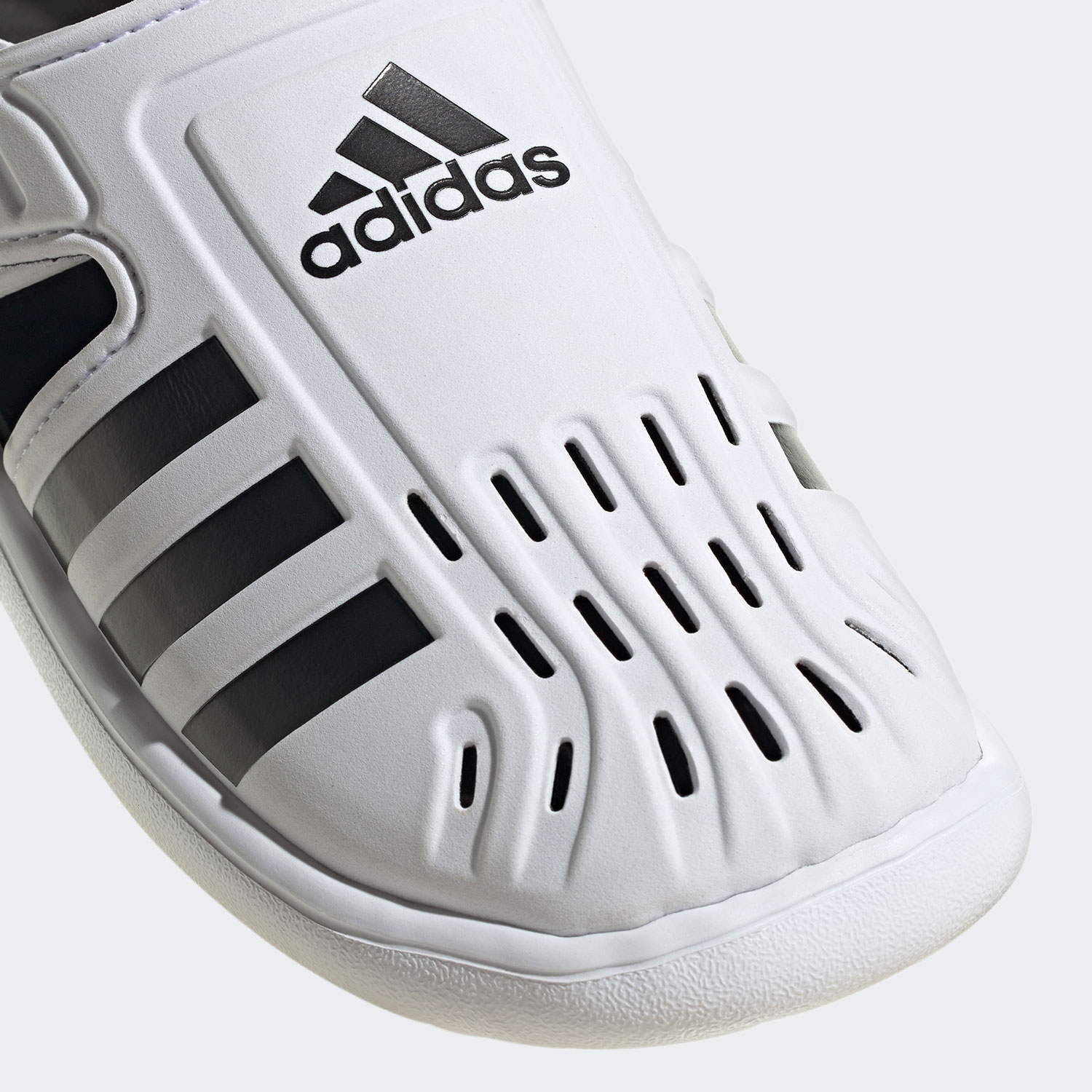 Αυτά τα παιδικά adidas πέδιλα έχουν ρυθμιζόμενα αυτοκόλλητα λουράκια που αγκαλιάζουν το πόδι, ακόμα και όταν είναι βρεγμένα. Το κλειστό μπροστινό μέρος έχει ανοίγματα που κρατά τα ποδαράκια στεγνά ενώ τα προστατεύει από αιχμηρά αντικείμενα.